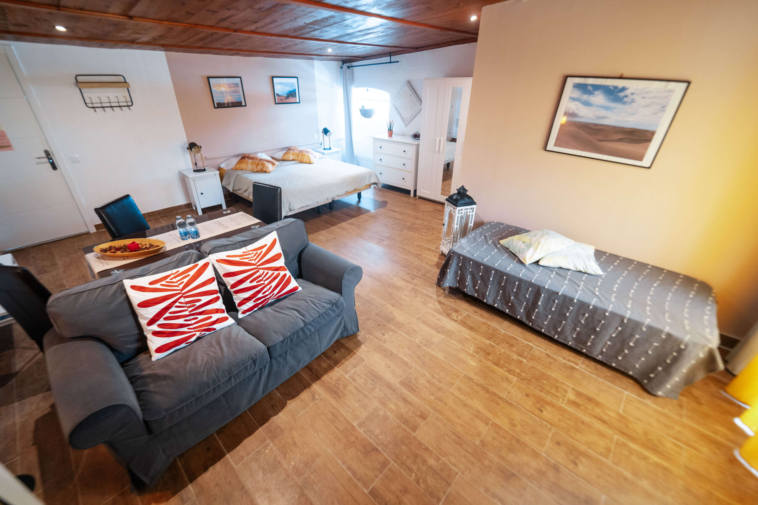 The Gran Canaria Suite is a cozy 40 sqm room on the second floor, offering a south-facing window with views of Montaña Blanca.